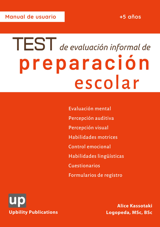 El Test de evaluación informal de preparación escolar pone a prueba diferentes campos del desarrollo psicocognitivo del participante, como la atención y concentración, el desarrollo del lenguaje, el desarrollo cognitivo, el desarrollo socioemocional, habilidades de motricidad fina y gruesa, etc. Las actividades propuestas en este libro forman parte de un test informal que permite identificar posibles problemas o deficiencias para que los profesionales puedan aplicar estrategias de intervención apropiadas en cada caso. Se recomienda utilizar esta herramienta para valorar la preparación de niños y niñas que van a acceder a la educación primaria con el objeto de profundizar en las potenciales debilidades individuales identificadas, evitando así una posible aversión por el entorno escolar y facilitando una integración sencilla y rápida.