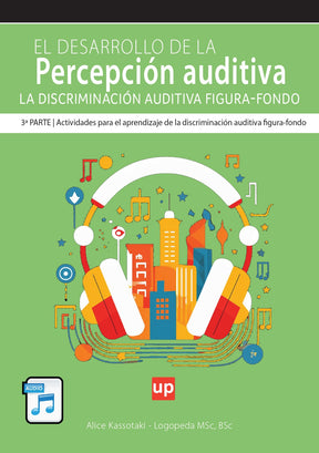 El libro Desarrollo de la percepción auditiva | Discriminación auditiva figura-fondo consta de atractivos ejercicios de dificultad variable que pueden ayudar a los estudiantes a ser capaces de distinguir el mensaje principal del ruido del entorno. De este modo, los participantes adquieren la capacidad de centrarse en el orador, a la vez que ignoran los ruidos de fondo, como el sonido de un avión, el ruido del tráfico, etc.